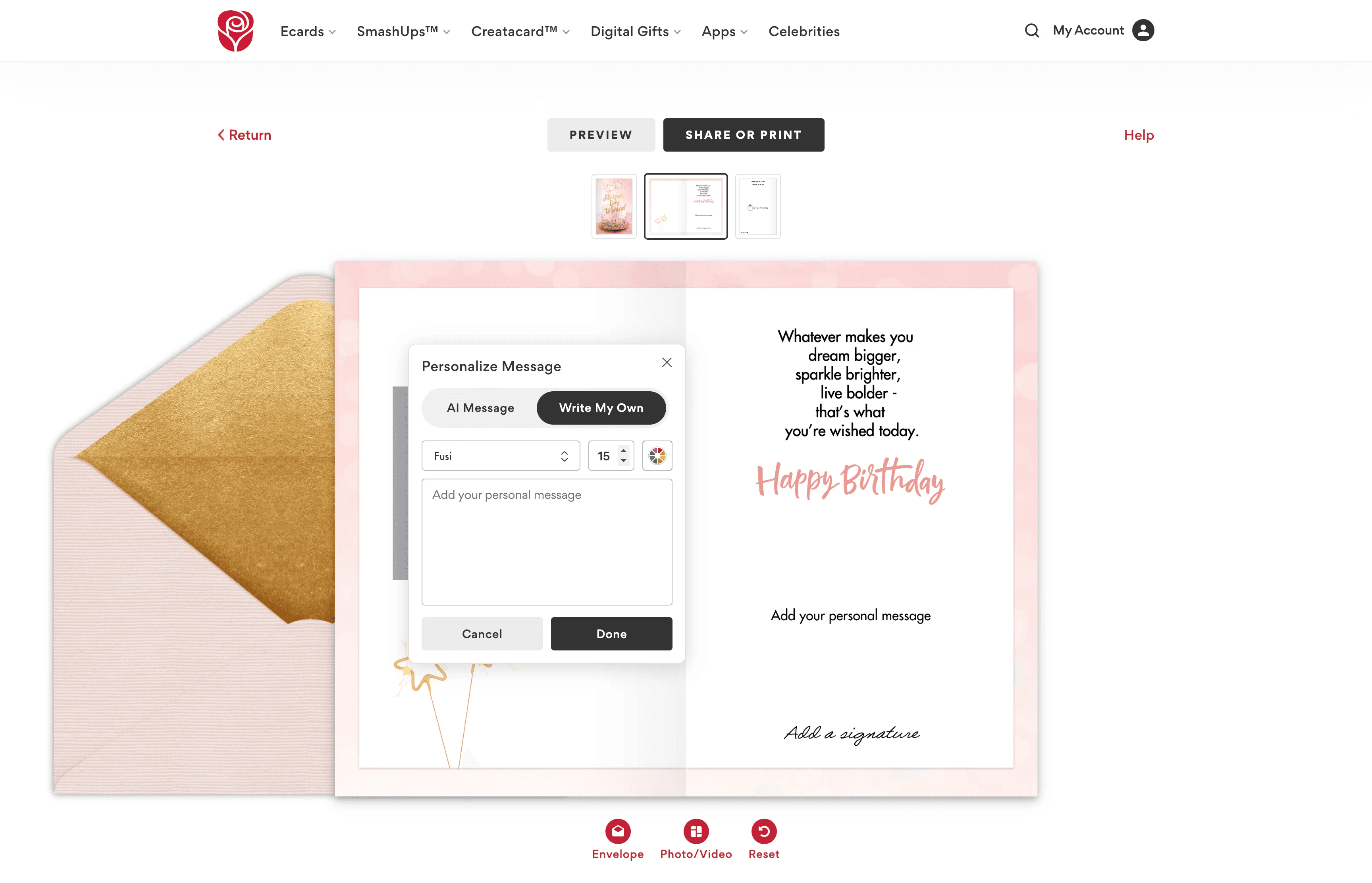 This project drastically improved overall Creatacard™ sends and usage on American Greetings, setting a new foundation for both desktop and mobile personalization experiences across the brand.